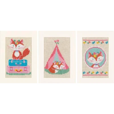 Vervaco Counted Cross Stitch Kit: Cards: LIEF Indian Bear: Set of 3,...