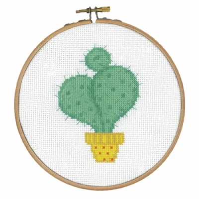 Vervaco Counted Cross Stitch Kit with Embroidery Ring: Cactus I, Cotton, NA, 14.5 x 14.5cm / 5.8"