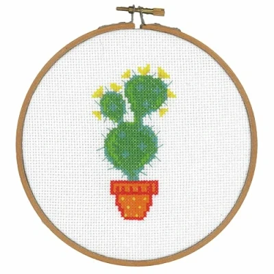 Vervaco Counted Cross Stitch Kit with Embroidery Ring: Cactus I, Cotton, NA,...