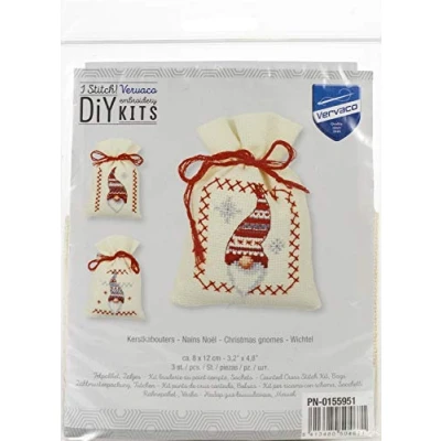 Vervaco Counted Cross Stitch: Pot Pourri Bag: Christmas Elves (Set of 3), COTTON, NA, 8 x 12cm