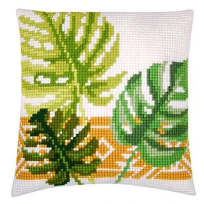 Vervaco Cross Stitch Cushion Botanical Leaves, Cotton Blend, Assorted, 25.6 x 2.9 17.9 cm