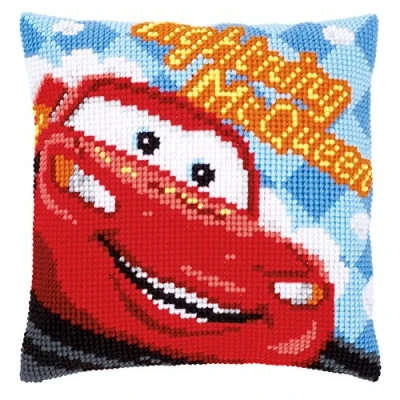 Vervaco Cross Stitch Cushion: Lightning McQueen, Acrylic, Multi Colour, 30 x 2 35 cm