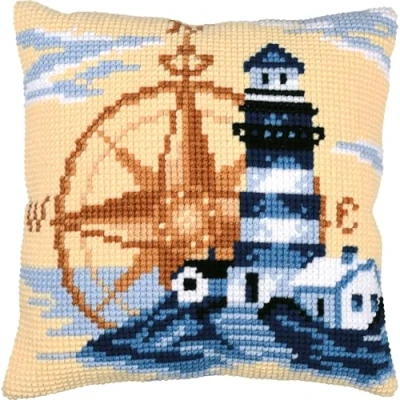 VERVACO Cross Stitch Embroidery Kits Cushion Set Beginners Pre Printed Marine DIY Creative for Adults Decorative Approx. 40 x cm Craft Craftsman Home Decoration