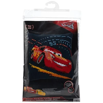 Vervaco Cross Stitch Kit: Cushion: Cars Cruz, Cotton, Assorted, 10 x 1 14 cm