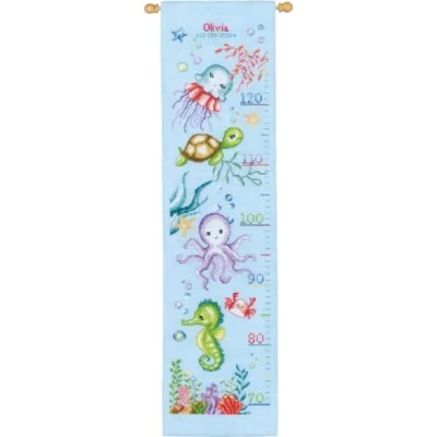 Vervaco Cross Stitch Kit Height Gauge for Children Marine Animals Gifts DIY Complete Creative Crafts Adults Decoration Wall Embroidery Beginners ca. 18 x 70 cm
