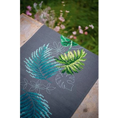 Vervaco Cross Stitch Kit Pre Printed Table Runner Botanical Leaves Embroidery Blankets Drawn Crafts Adults Creative for DIY 38 x 138 cm