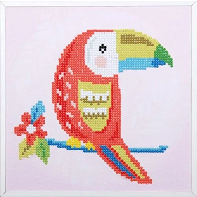 Kit includes: high quality colour printed, 100% polyester fabric; pre-sorted 'diamonds' By number; plastic bags for storing sorted 'diamonds'; 'diamond' Applicator tool, craft tray and wax caddy; complete instructions. Suitable for ages from 8 years. Approximate finished size of kit: 22 x 22cm