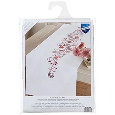 Vervaco Embroidery: Runner: Swirls & Flowers, 100% Cotton, Multi Colour, 38 x 2 20 cm