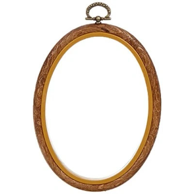 Oval, plastic imitation wood frame to display needlecraft pieces. 10 x 14cm Frame