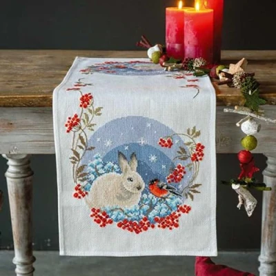Vervaco Hare and Bullfinch Aida Table Runner Kit