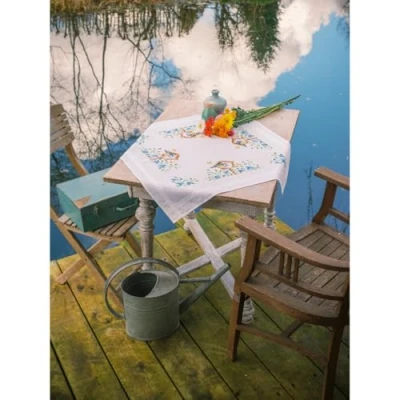 Nappe imprimée,, avec bord incrusté,, Fabric à broder: 100% coton,, Fil: 100% cotton DMC,, Carte de fils,, Instruction dans huit langues,, Diagramme agrandi,, Aiguille - Photo,, Le dessin imprimé disparaîtra au lavage,, Confectionné,, Manufacturer: Verachtert