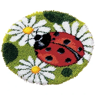Kit includes latch hook and binding tape for finishing Fabric Included: Printed Rug Canvas pre-cut 100% Acrylic rug Yarn Finished Size: 55cm or 22in Diameter Latch Hook Kit