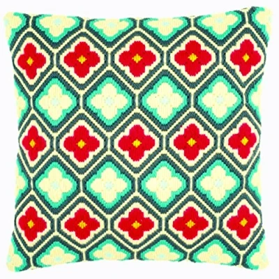 Cross stitch Cushion Kit includes handpainted large hole canvas 100% Thick yarn 100% Acryl needle and instruction 16" x 16" inches. Cushion back and Cushion pads are NOT included.