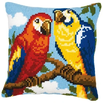 Vervaco Parrots Cross Stitch Cushion, Multi Colour