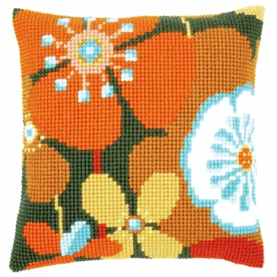 Vervaco PN 0156667 Retro Flowers II Cross Cushion Pre Printed Cotton, Multi Colour, 40 x cm