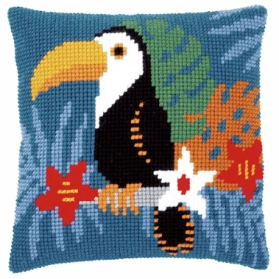 Vervaco PN 0179357 Tukan Preprinted Cross Cushion Cotton, Multi Colour, 40 x cm