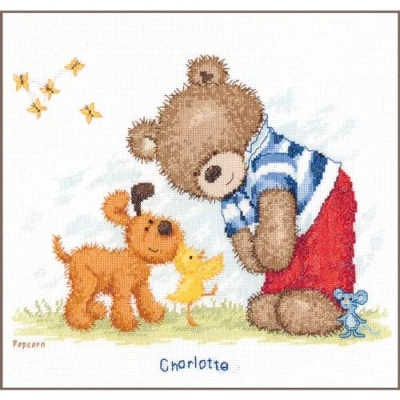 Counted stitch embroidery kit with diagram,, Embroidery fabric: 100% cotton,, Yarn: 100% cotton DMC,, Aida 6.4 stitches/cm,, Thread card,, Instruction in eight languages,, Enlarged diagram,, Needle,, Photo,, With alphabet,, Manufacturer: Verachtert