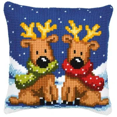 Vervaco Reindeer Twins Cross Stitch Cushion, Multi Colour