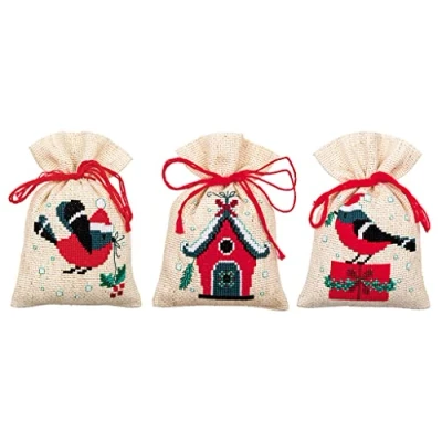 Vervaco Set of 3 Counted Cross Stitch Kit Aromate Bag Bird and Christmas House Embroidery Craft Home Decoration Gift DIY Approx. 8 x 12 cm