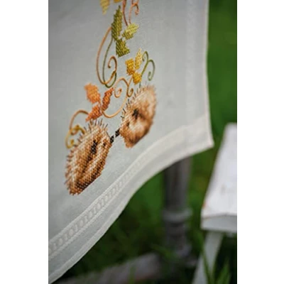 Vervaco Stamped Cross Stitch, Cotton, Hedgehogs and Autumn Leaves