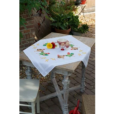 Printed design to be stitched with pre-sorted cotton threads onto white, cotton fabric with hemmed inwoven border. Approximate finished size: 80 x 80cm, 32 x 32in. Age category: from 9 years. Stitches: satin stitch, stem stitch, back stitch. The printed design will wash out.