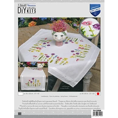 Printed tablecloth, with inlaid edge,, Embroidery fabric: 100% cotton,, Yarn: 100% cotton DMC,, Thread card,, Instruction in eight languages,, Enlarged diagram,, Needle - Photo,, Printed drawing will disappear when washed,, Made,,, Manufacturer: Verachtert