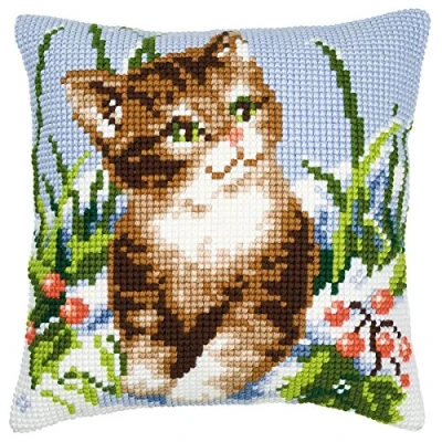 Vervaco Winter Scene Kitten Cross Stitch Cushion, Multi Colour, One