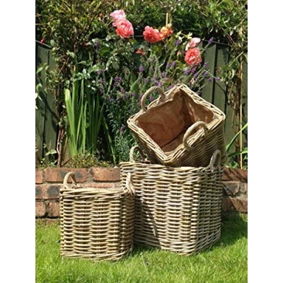 Very Strong Square Log Baskets/Storage Baskets Set with Removable Liners of 3 Small, Medium & Large