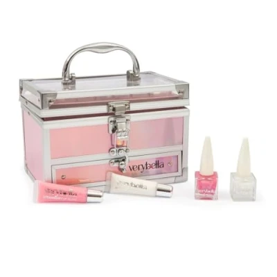 Verybella Makeup Case with Handle, 20 x 13 14 cm, Inner Tray and Drawer for Jewellery, Includes 1 Palette of 8 Different Eyeshadows, 2 Applicators, Peel Off Nail Polish, Lip Gloss, pink