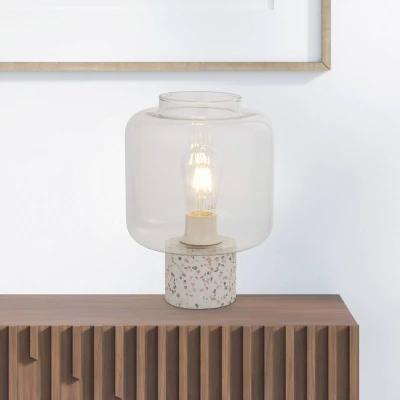 Vessel Table Lamp Terrazzo Base With Glass Shade