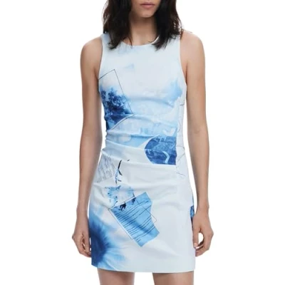 Arty print Fit: Slim Neckline: Round Sleeveless Length: Short