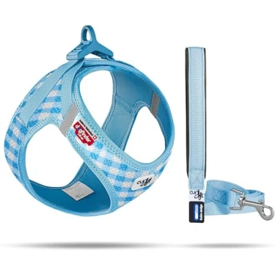 The perfect combination: While the dog harness with its ergonomically optimal fit ensures a comfortable fit, the padded wrist strap of the leash provides a secure and comfortable grip Sophisticated dog accessories with strong curli clasp buckle: your leash can be attached with just one hand to the noise and weight reducing buckle, which holds tensile loads over 70 kg thanks to the high-strength material! Maximum safety: The integrated DogFinder ID and the reflective strips on the neck area of the dog harness guarantee a safe walk even in the dark, even if your dearest four-legged friend should ever escape. Customize your dog leash: The practical attachment option on the leash allows you to add and attach other small accessories in addition to the poop bag dispenser. Scope of supply: curli VEST HARNESS AIR-MESH & BASIC LEASH harness set for puppies (set of dog harness & dog leash, ergonomic and lightweight, incl. DogFinder ID) - size harness: S - size leash: M - color: Skyblue-Caro