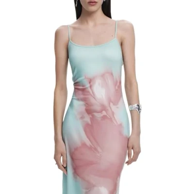 Fit: Slim Length: Midi Arty print Neckline: Round Thin straps