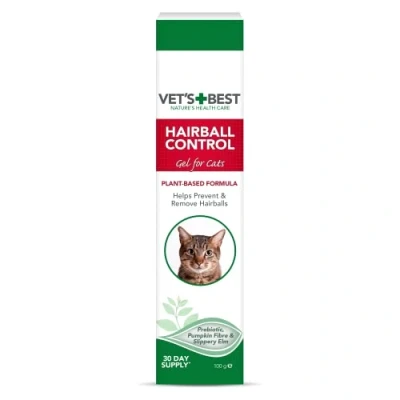 SUPPORTS HEALTHY DIGESTION - This specific blend of soluble and insoluble fibres was carefully formulated by veterinarians to Promote good digestion and minimizes the formation of hairballs your cat's stomach INGREDIENTS - Vet's Best Hairball Relief is specially formulated with a blend of plant-based ingredients, including pumpkin fibre, psyllium seed, slippery elm bark, apple fibre and spirulina CLASSIC CHICKEN FLAVOR - Our classic chicken flavour is a favourite among felines and provides safe support for a healthy digestive system NATURAL - Vet's Best Hairball Relief supplement gel is petroleum free and contain no molasses, corn syrup or added sugars DIRECTONS - To familiarise your cat to the gel add a 2 cm ribbon to favourite treat or food; the gel can then be given either from your finger or by placing on the cat's front paw where it can be licked off
