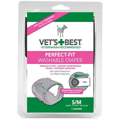 COMFORTABLY TAILORED - Vet's Best Perfect-Fit Washable Female Dog Diaper in the Small/Medium size fits female dogs with a 38-76cm waist. VERSATILE AND REUSABLE - A perfectly reusable solution for managing your female dog’s urinary incontinence, excitable urination, or heat cycle. CUSTOMIZABLE FIT - A repositionable closure provides a custom fit, allowing for increased movement and flexibility without compromising leak protection or absorbency. ENGINEERED FOR DRYNESS - A moisture-wicking layer keeps your dog dry and comfortable while super-absorbent microfiber pads work to contain liquid. A leak-proof barrier and durable outer fabric keep the mess in the diaper and off your home surfaces. FREEDOM FOR YOU AND YOUR DOG - Worry-free protection for your home and unhindered movement for your female dog. All from a convenient, easy to use diaper. For male dogs, use Vet’s Best Perfect Fit Washable Male Dog Wraps.