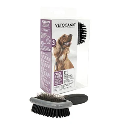 Removes tangles, tangled hair and dead hair from your dog's coat Ergonomic double carde thanks to its lightweight rubber handle Solid card with stainless steel nozzles For all types and lengths of hair Use daily to care for your dog's coat