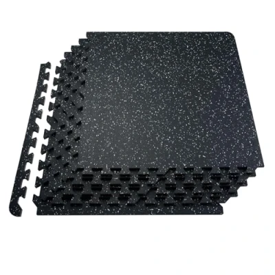 VevorVEVOR 0.56 Inch Thick Gym Floor Mats, 6 Tiles Rubber Top with EVA Foam, 25" x 25" Gym Flooring Workout Mats with 25 sq.ft Coverage, Interlocking Puzzle Gym Mats for Gym, Home, Garage, Black & WhiteShock Absorption and ReboundDurable and Scratch-ResistantStrong SoundproofingEasy AssemblyConvenient CleaningEdge ProtectorsThickness: 0.56 in,Area: 24 SQFT,Set Quantity: 6 pcs,Color: Black with White Dots,Item Model Number: HRD-XJD6614-6W,Product Weight: 6.6 kg / 14.55 lbs,Dimensions: 24 x 24 in (per piece), with 2 Toothed Edges + 2 Straight Edges,Product Dimensions: 24 x 24 x 0.56 in / 610 x 610 x 14 mm,Main Material: Top Layer: Rubber, 2 mm (Synthetic Rubber + 5% EPDM Granules), Bottom Layer: PE, 12 mm