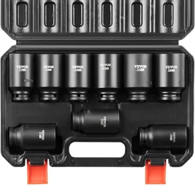 VEVOR 1/2" Drive Impact Socket Set, 9 Piece Deep Set Metric 29 38mm, 6 Point Cr Mo Alloy Steel for Auto Repair, Easy to Read Size Markings, Rugged Construction, Includes Storage Case
