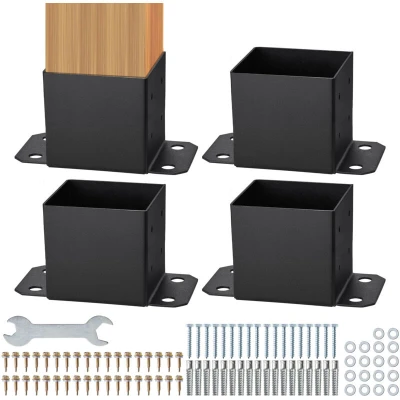 VevorVEVOR 152.4x152.4 Post Base 4 Pcs, Inner Size 142x142 Post Base Brackets, Heavy Duty Powder-Coated Post Anchor Matte Black Wood Post Brackets for Pavilion Deck Railing Support Deck Base PlateSafety SupportDual-Purpose ScrewsSturdy and Durable MaterialEasy InstallationVersatile Use6''x6'' Standard ColumnProduct Dimensions (per piece): 8.4x5.7x5.5 in / 214x146x140 mm,Model: QBLZ-6in-4,Quantity: 4 pcs,Net Weight: 14 lbs/6.35 kg,Main Material: Carbon Steel