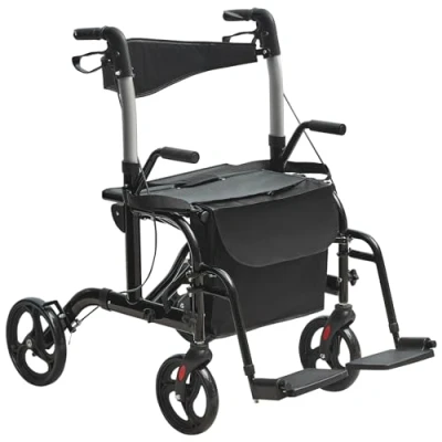 VEVOR 2 in 1 Rollator Walker & Transport Chair for Seniors, Folding Rolling Wheelchair Combo Footrests, Lightweight Aluminum Mobility with Adjustable Handle, All Terrain Wheels, 300LBS