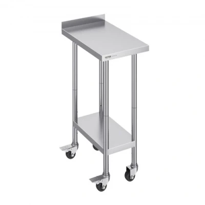 VEVOR 24 x 15 x 40 Inch Stainless Steel Work Table, Commercial Food Prep Worktable with Casters, Heavy Duty Prep Worktable, Metal Work Table with Adjustable Height for Restaurant, Home and HotelStylish Work TableMultiple Styles AvailableDurable, Safe, and StableFlexible SetupEasy to InstallVersatile ApplicationsProduct Size (L x W x H): 24 x 15 x 40 inch / 610 x 381 x 1005.6 mm,Backsplash Height: 2 in / 5 cm,Item Model Number: HETG-24*15-L,Product Weight: 22 lbs / 9.8 kg,Material: Stainless Steel