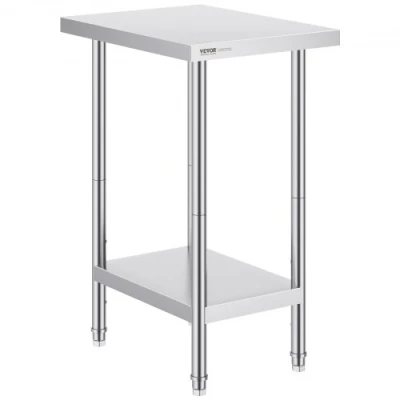 VEVOR Stainless Steel Prep Table, 24 x 18 x 34 Inch, Heavy Duty Metal Worktable with 3 Adjustable Height Levels, Commercial Workstation for Kitchen Garage Restaurant BackyardStylish Work TableMultiple Styles AvailableDurable, Safe, and StableFlexible SetupEasy to InstallVersatile ApplicationsHeight Adjustment: 3 Levels,Product Size (L x W x H): 24 x 18 x 34 inch / 610 x 457 x 864 mm,Item Model Number: HET-24*18,Product Weight: 21 lbs / 9.4 kg,Material: Stainless Steel