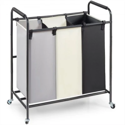 VEVOR 3-Section Laundry Basket, Heavy Duty Laundry Hamper Storage Organizer, Laundry Sorter Cart with Heavy Duty Lockable Wheels for Dirty Clothes in Laundry Room BedroomStreamline Your Laundry Routine3 Sections Large CapacityWin in the DetailsVersatile ApplicationsEasy AssembleSpace OptimizationCaster Diameter: 1.5 in/38.9 mm,Caster Material: Rubber,Bag Material: Oxford Cloth 600D,Overall Load Bearing: 33 lbs/15 kg,Frame Material: Iron + Powder Coating,Bag Load Bearing: 25 lbs/11.4 kg,Weight: 8.16 lbs/3.70 kg
