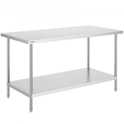 VEVOR Stainless Steel Prep Table, 30 x 60 x 34 Inch, Heavy Duty Metal Worktable with 3 Adjustable Height Levels, Commercial Workstation for Kitchen Garage Restaurant BackyardStylish Work TableMultiple Styles AvailableDurable, Safe, and StableFlexible SetupEasy to InstallVersatile ApplicationsHeight Adjustment: 3 Levels,Product Size (L x W x H): 30 x 60 x 34 inch / 762 x 1524 x 864 mm,Item Model Number: HET-30*60,Product Weight: 62 lbs /27.9 kg,Material: Stainless Steel