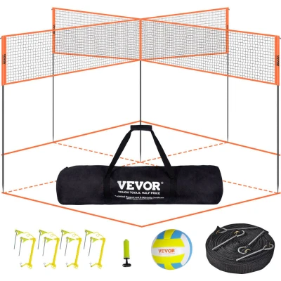 VevorVEVOR 4-Way Volleyball Net, Adjustable Height Badminton Net Set for Backyard Beach Lawn, Outdoor Portable Volleyball Net with Carrying Bag, 4 Square Quick Assemble Game Set For Kids And AdultsDual Height AdjustmentVersatility in Player GroupingsBuilt to LastTrouble-Free AssemblyEasy to CarryUnrestricted Enjoyment of SportsColor: Orange,Item Model Number: JH-205,Material: Steel, Polyethylene (PE),Net Weight: 12.7 lbs / 5.78 kg