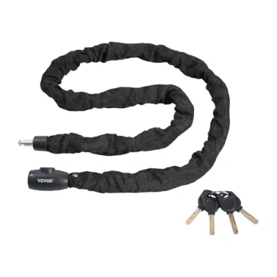 Quality Material: This bike chain lock is crafted from high-quality forged steel, offering high hardness and exceptional anti-theft capabilities. It is resistant to cutting, slicing, hammering, and drilling, making it ideal for securing your bicycle, motorcycle, and other valuable items. Chain Construction: Featuring a top-grade metal steel chain with a diameter thickness of 0.4 in /10 mm, this bicycle chain lock is sturdy and durable, effectively resisting violent attacks to keep your bike safe. Chain Protection Sleeve: Wrapped in a soft black cover, this motorcycle chain lock remains smooth and shiny while protecting your bike from scratches. Versatile Applications: This chain lock bike has a wide range of applications; it's not only suitable for locking bicycles and motorcycles but also for securing lawn mowers, sports equipment, toolboxes, scooters, skateboards, gates, fences, grills, ladders, and more, helping to protect your valuable possessions. Easy to Use: Simply remove the key after locking the bike lock chain to prevent loss. Each chain lock comes with 4 spare keys, ensuring that even if you accidentally misplace a key, you’ll still have a suitable replacement on hand.