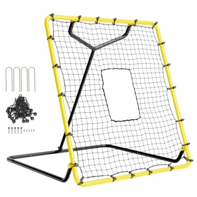 ManoManoGeneral description The VEVOR Baseball and Softball Rebounder Net is a versatile training tool designed for pitching and fielding practice. With a size of 4 x 4.5 feet, it features a flat net design that maximizes the usable area, making it suitable for players of all skill levels, from beginners to professionals. Technical specifications Dimensions: 4 x 4.5 feet Weight: 7.59 kg / 16.7 lbs Material: Q195 heavy-duty steel frame and UV-resistant PE rebound netting Adjustable angles: 40°, 62°, 84°, 106° Net strands: 51-strand high-density PE Installation Easy assembly allows for quick setup by one person. Includes 4 sturdy ground stakes for stability during practice. Usage Ideal for practicing catching and throwing skills at various angles, including high balls, line drives, and grounders. Suitable for solo practice sessions both indoors and outdoors. Other information