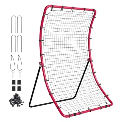 Curved Net Design: A 4 x 5.5 ft baseball rebound net with a curved net design, offering varying rebound angles across different areas to enhance randomness in ball return. Designed for baseball and softball, suitable for beginners, professional players, and recreational games. Full-Featured: The baseball net features 5 adjustable angles (0°, 40°, 62°, 84°, 106°) and target area settings, equipped with a 45-strand high-density PE rebound net for superior bounce. Helps practice catching and throwing skills at different angles, including high balls, line drives, and grounders. Durable Steel Construction: Constructed with Q195 heavy-duty steel frame and UV-resistant PE rebound netting. Includes 4 sturdy ground stakes to withstand high-impact practice without tilting or collapsing. Durable materials resist wear and tear. Easy Assembly: Simple installation allows one person to set up the baseball rebound net quickly, making it effortless to start practicing without delays. Ideal for solo practice sessions indoors and outdoors, ensuring convenience and flexibility. Lightweight and Portable: Weighing only 6.55kg / 14.4 lbs, its lightweight and foldable design make it exceptionally portable, enabling easy transport to any practice location or compact storage when not in use, ensuring convenience and durability throughout its use.