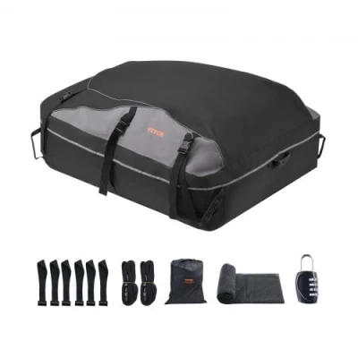 VEVOR Car Rooftop Cargo Carrier Bag, 21 Cubic Feet Cargo Carrier for Car Roof, 100% Waterproof 900D Oxford Cloth Roof Luggage Bag for All Vehicle with/without Rack- with Lock, Non-Slip Mat, Door HooksPremium MaterialLarge CapacityFree Up Interior SpaceQuick & Easy InstallationAll-Weather ProtectionEnjoyable TravelColor: Black + Gray,Item Model Number: THCB-P0320,Bag Capacity: 21 Cubic Feet,Net Weight: 9 lbs / 4.1 kg,Main Material: 900D Oxford Cloth,Product Size: 52 x 39.4 x 17.5 inch / 132 x 100 x 44.5 cm