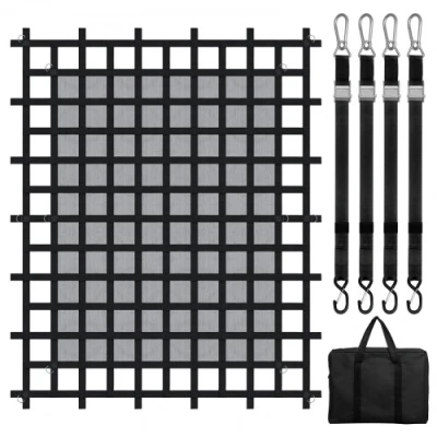 VEVOR Cargo Net, 96 in x 81 in, Heavy Duty Truck Cargo Net for Truck Bed, 4 Adjustable Straps with Carabiners & S-Hooks, Wear-resistant & Weather-proof, Suitable for Pickup, Truck, Jeep, SUV, BoatStrong Load-bearing CapacityWear-resistant & WeatherproofFlexible Adjustment & FixingTight Mesh ProtectionEasy Installation & UsageConvenient Organization & StorageS-Hook Inner Ring Diameter: 0.1 in / 30 mm,S-Hook Size: 4.1 x 1.6 in / 105 x 40 mm,Adjustable Strap Size: 13 - 59 in / 330 - 1500 mm,Carabiner Size: 3.9 x 1.9 in / 99 x 47 mm,Max Tensile Capacity of Net: 1500 lbs / 680 kg,Hole Size: 6.5 x 6.5 in / 165 x 165 mm,Item Model Number: PLCN0096,Product Weight: 14.6 lbs / 6.6 kg,Material: Polyester Webbing + Stainless Steel D-rings 16 pcs,Cargo Net Size: 96 x 81 in / 2440 x 2060 mm,Product Dimensions: 100.4 x 84.3 x 0.6 in / 2550 x 2140 x 14 mm (Fully Expanded)